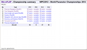Resumen de campeonato Muestra un resumen compacto e intuitivo del contenido del campeonato con enlaces a las pantallas de de diseño y análisis. ¡El formato ofrece un gran espacio disponible en pantalla para los patrocinadores del campeonato!. |
