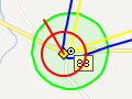 - The flight speed. When the line reaches the circumference, the competitor is flying at a speed of 50 Km/h. The segment's length varies proportionally to the speed.